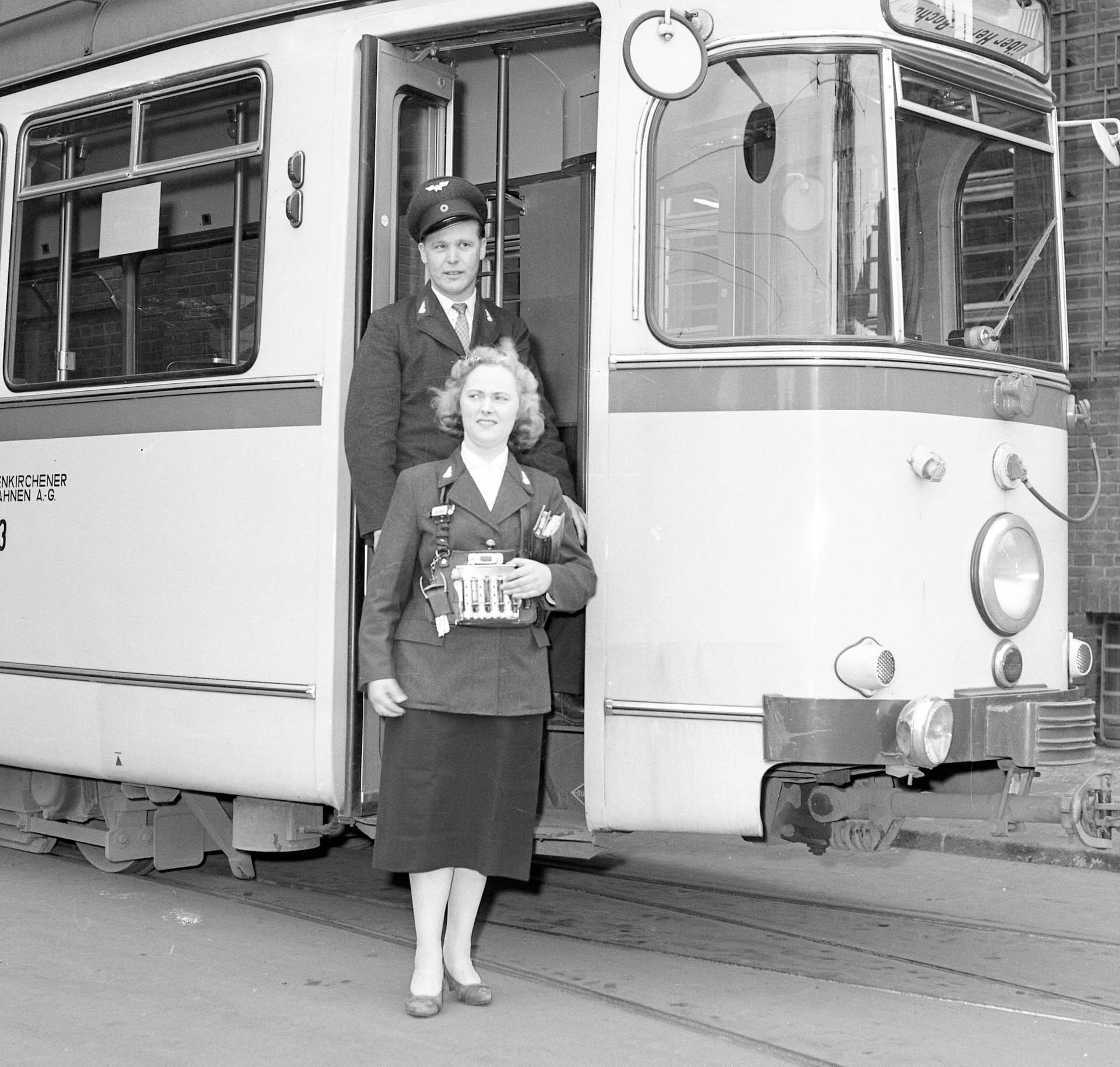 „Nachdem die Verkehrsbetriebe der Nachbarstädte schon längst die Uniformröcke verbannt haben, entschloß sich nun auch die Bochum-Gelsenkirchener Straßenbahn dazu, die Wünsche ihrer Beschäftigten zu erhören. Die Spiegel an den Jacken sind verschwunden, die blanken Metallknöpfe mußten weichen, Kokarde und geflügeltes Rad, die schon von weitem einen Straßenbahner erkennen ließen, wurden abgeschafft.“