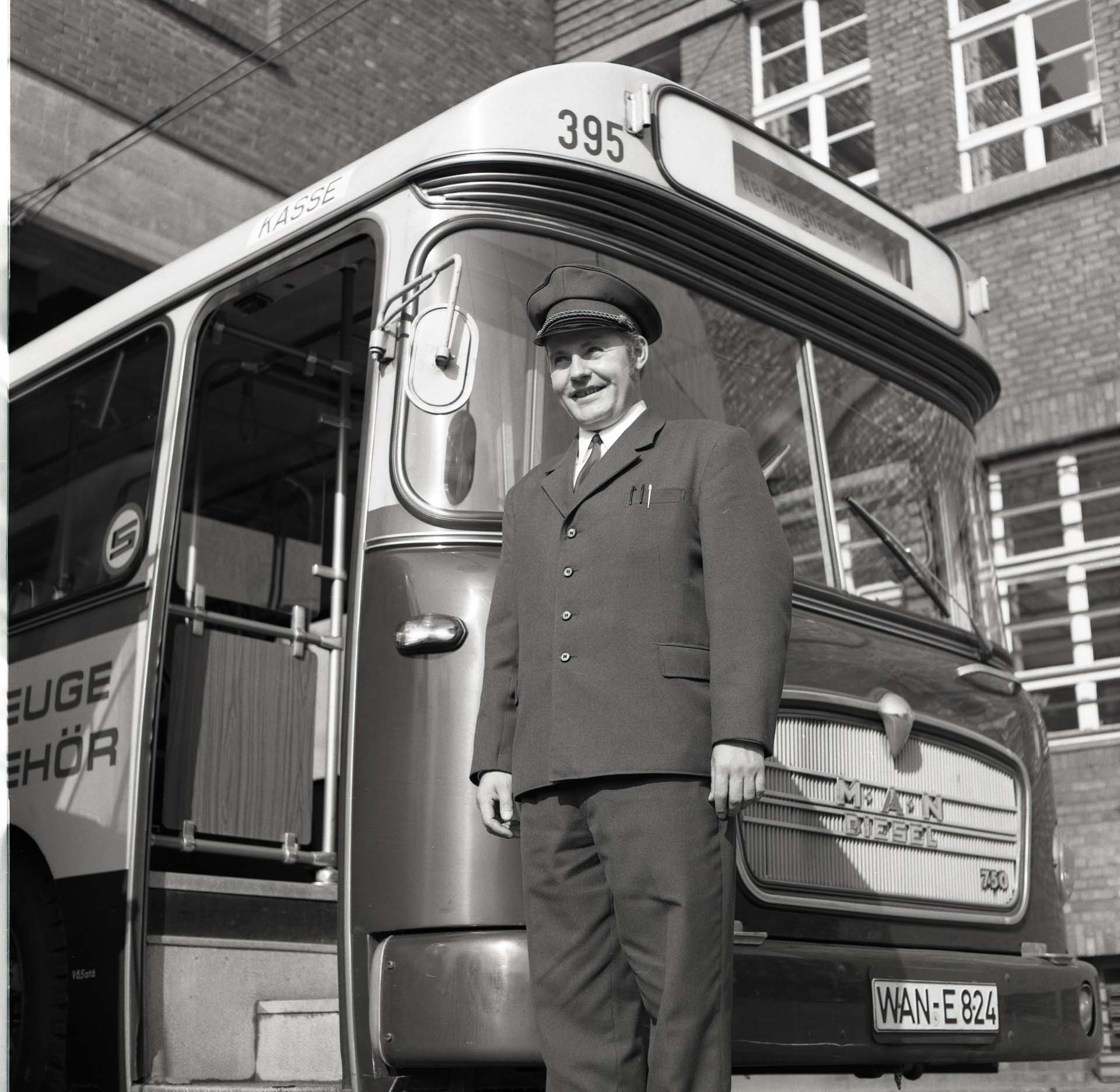 Im Sommer 1970 bekamen die BOGESTRA Mitarbeiter eine neue Dienstkleidung. Die bisher sehr dunkel gehaltenen „Uniformen“ mit grünem Kragenspiegel und den Emblemen für Autobus oder Flügelrad wurden entmilitarisiert und wurden wurden unscheinbar grau.