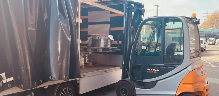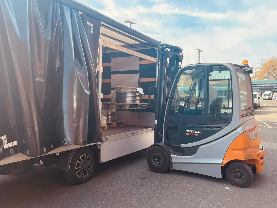 Vergangene Woche erhielten wir eine nicht alltägliche Lieferung vom Bochumer Verein. Der LKW brachte uns vom nahgelegenem Werk acht Radreifen, welche für unserem TW620 vorgesehen sind.