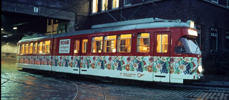 1977 stellte die BOGESTRA mit Tw 77 ihre erste Partybahn in Betrieb. Doch auch schon zuvor gab es gebuchte Partyfahrten mit nicht umgerüsteten Linienwagen.