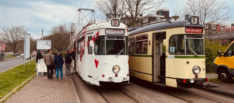 Auch unsere Kollegen aus Essen werden mit einem historischen Straßenbahnwagen und ihrem Tramshop vor Ort sein.