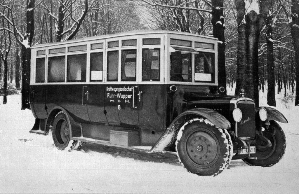 Am 21. November 1925 ging die Buslinie Bochum – Hattingen – Barmen in Betrieb. Sie wurde von der Ruhr-Wupper-Kraftwagen GmbH betrieben und führte im Zwei-Stunden-Verkehr über Einern, Herzkamp, Quellenburg, Bahnhof Bossel, Sprockhövel, Hattingen, Koster Brücke, Stiepel, Zeche Karl-Friedrich, Weitmar Bahnhof, Weitmar Hattinger Straße und Bochum Hauptbahnhof zum Wilhelmsplatz (heute Husemannplatz). Vorgesehen waren weitere Zweiglinien. Eingesetzt wurden schwere dreiachsige Büssing Busse. Die Wagen hatten Viertakt-Benzinmotoren mit 55 PS. Der Aufbau war von Weyer in Düsseldorf und bot 25 Sitzplätze und 22 Stehplätze. 90 Minuten wurden für die Gesamtstrecke benötigt.