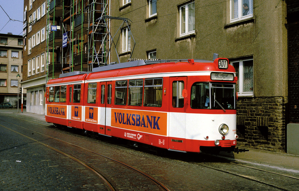 Nachdem es am 8. Januar 1980 an der Haltestelle Ruhr-Universität zu einem schweren Auffahrunfall zwischen dem sechsachsigen Triebwagen 388 der Vestischen Straßenbahn und dem BOGESTRA-Triebwagen 40 kam, wurde Triebwagen 388 aufgrund seiner Schäden ausgemustert und zur Verschrottung abgestellt. Triebwagen 40 wurde jedoch wieder repariert und gehört mit zu den wenigen Wagen dieser Gattung, die im Jahr 1984 für die anstehende Eröffnung des ersten Stadtbahntunnels in Gelsenkirchen stadtbahntauglich umgebaut wurden.